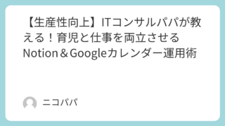 • 【生産性向上】ITコンサルパパが教える!育児と仕事を両立させるNotion&Googleカレンダー運用術