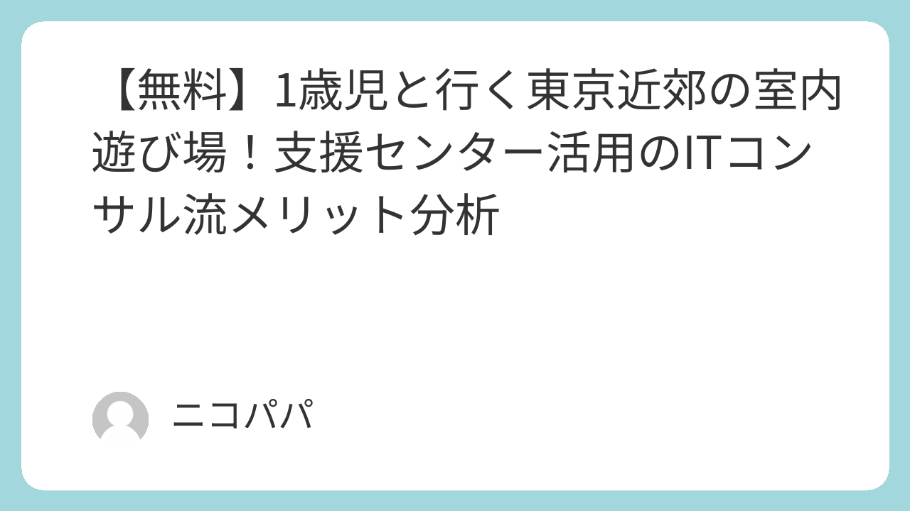 無料の遊び場活用は、家計の最適化だけでなく、親の孤立を防ぐための「セーフティネット」としての役割も果たします。ITコンサルのように情報を整理・活用し、賢く東京での育児を楽しんでいきましょう。